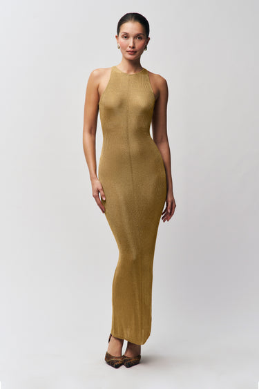 - Make a statement with our Odette Dress, crafted from shimmering slinky knit for a touch of glamour. This high neck maxi dress features a flattering fit that accentuates your silhouette, perfect for both day and night looks. The sparkly fabric catches the light beautifully, ensuring you stand out in any setting.