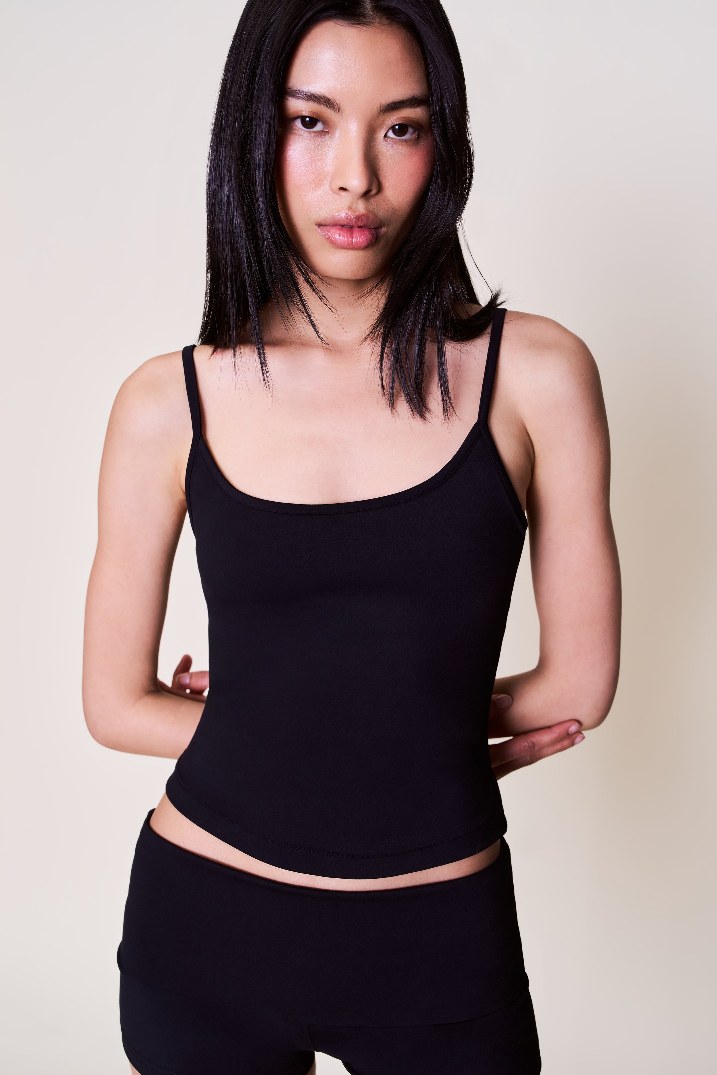 • Designed with a built-in bra and adjustable straps, the Body Tank offers refined support with a smooth, body-hugging fit. Minimal and versatile—wear it layered or on its own.