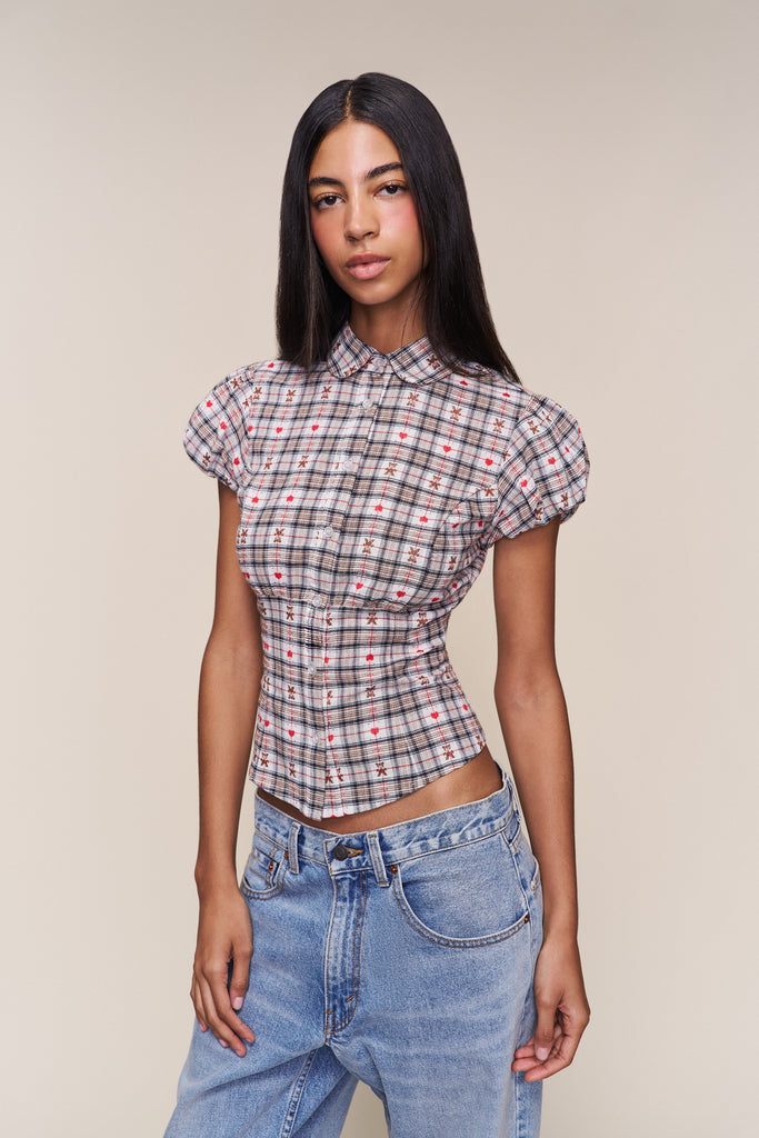 Liana Top in Bear Plaid