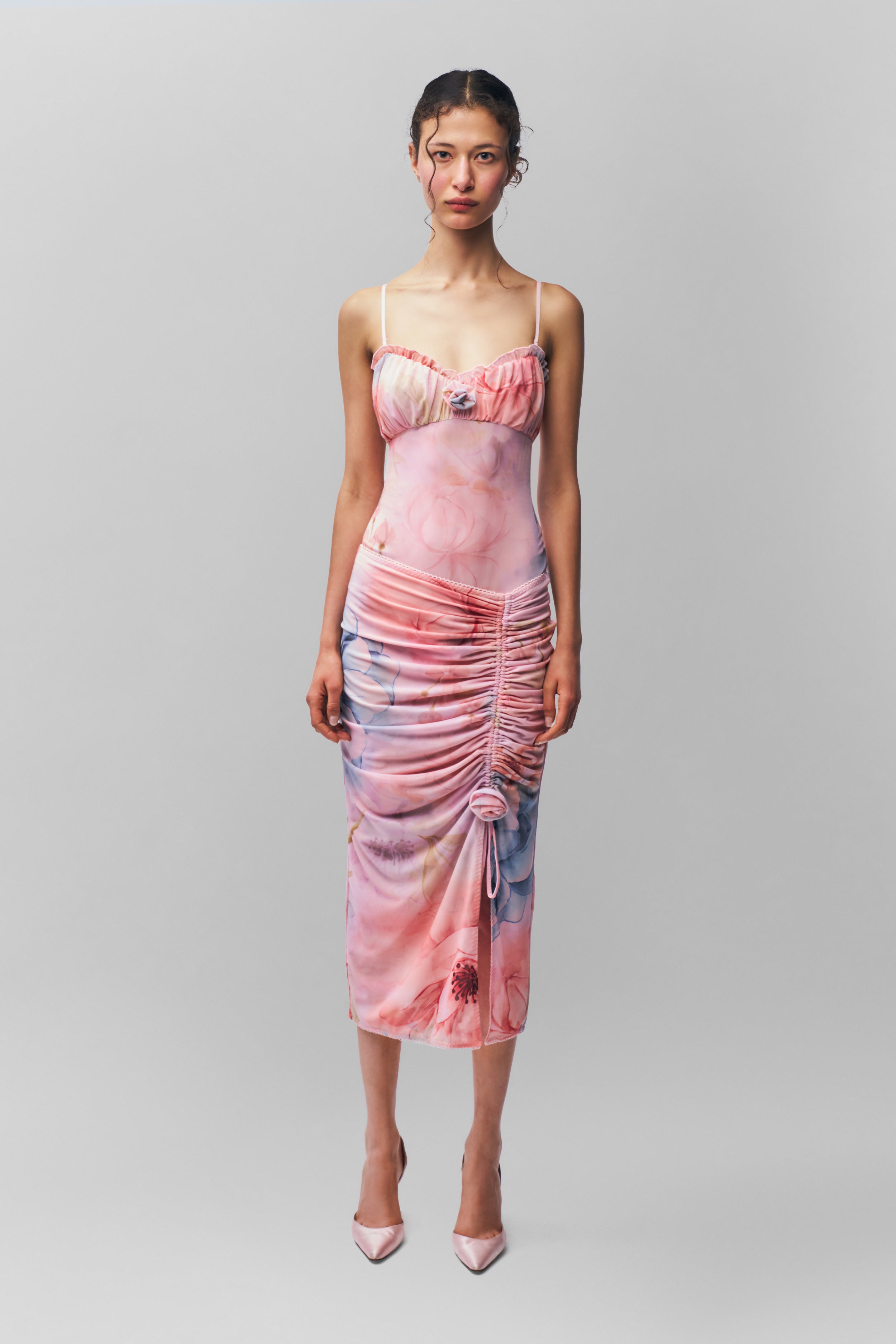 - Introducing the Celastrina Skirt, crafted from a double-lined mesh fabrication for both comfort and style. This skirt showcases an adjustable ruched side with a charming rosette detail.