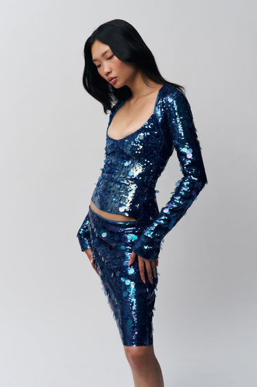 - Set the trend with our Paillette Midi Skirt, featuring shimmering paillettes that will elevate any outfit. This chic midi skirt will catch all eyes as you move, giving you a luxurious and exclusive look. Make a statement with sophistication in our Paillette Midi Skirt.
