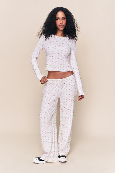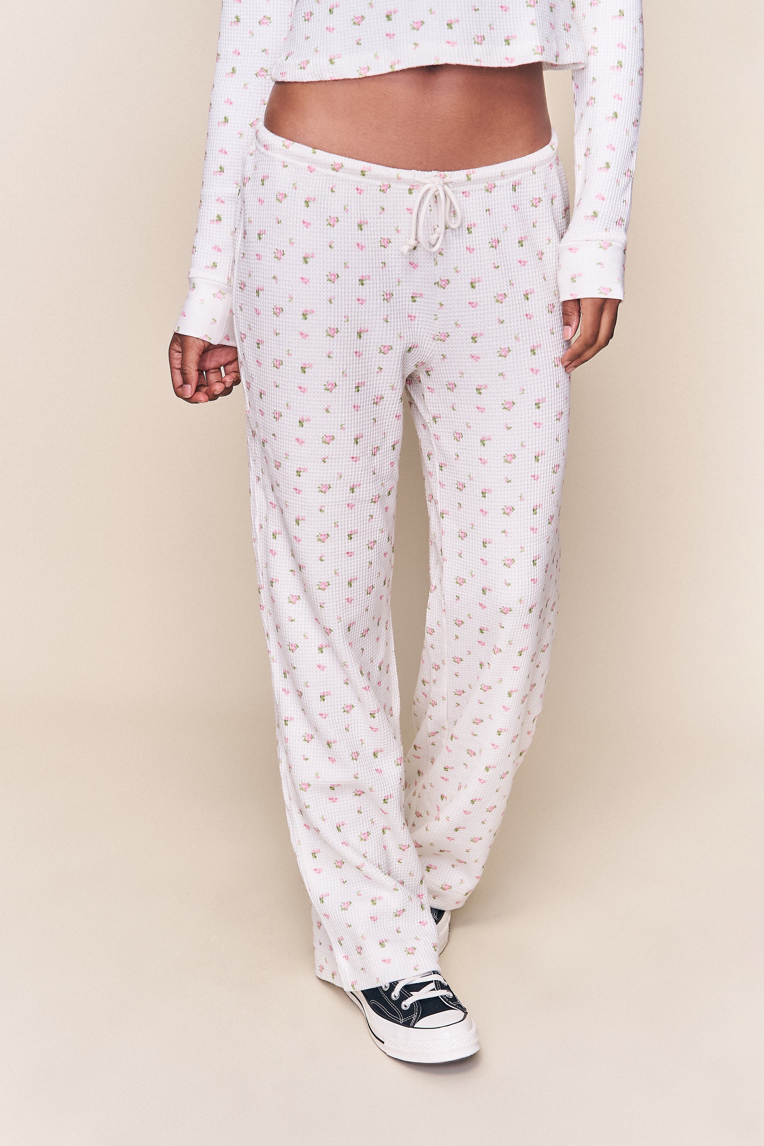 - An effortless lounge essential. The Lumi Relaxed Pant is made in the same ultra-soft waffle knit and delicate rose pattern, cut with a mid-rise fit and loose, drapey leg. Finished with a comfortable elastic waistband and adjustable tie for a custom feel. Wear them with the Lumi Top for the full set—sweet, simple, and made for unwinding.