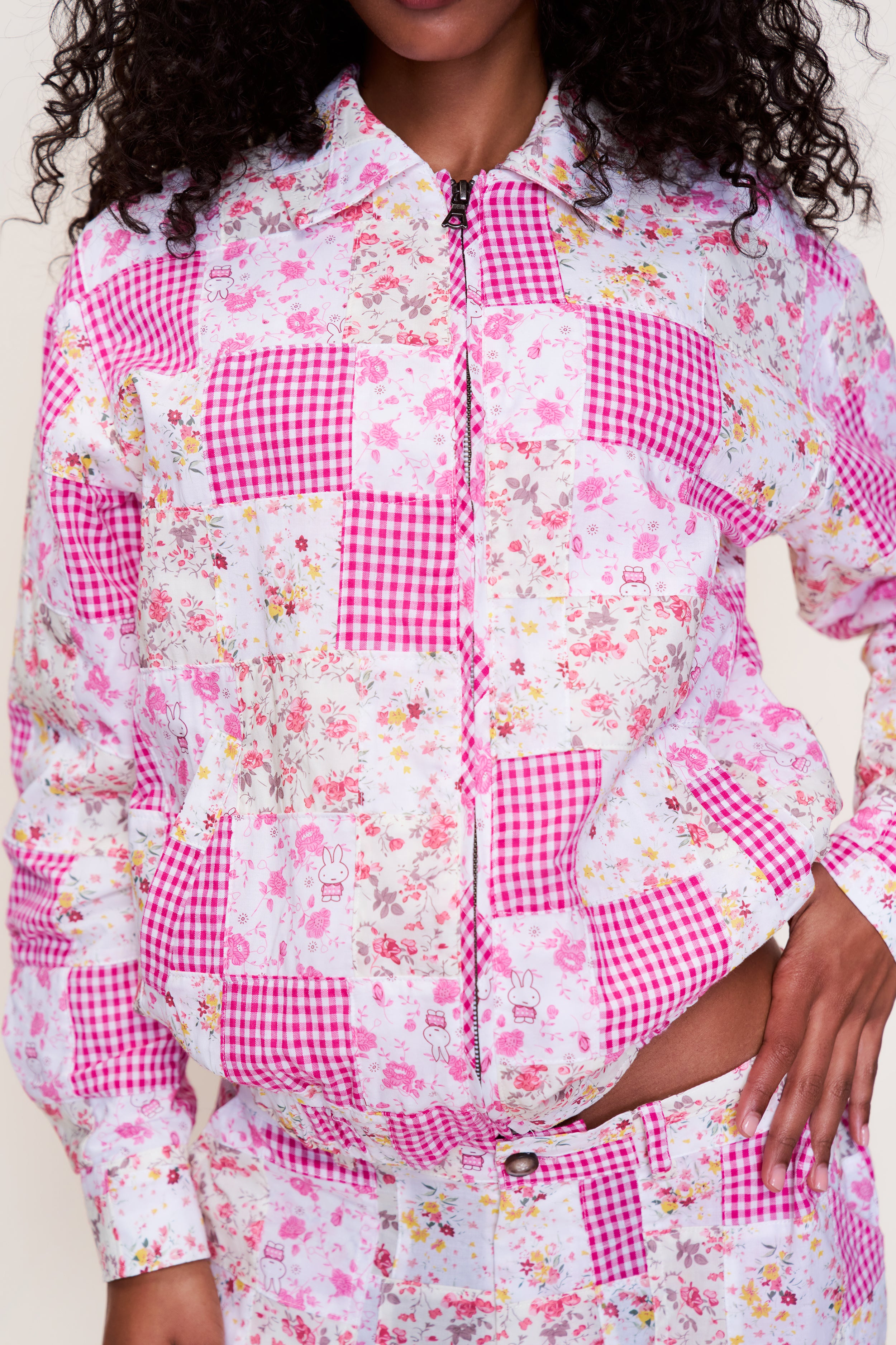- Crafted from 100% Cotton, the Adrian Patchwork Bomber is a lifetime-worthy statement piece. Designed for an oversized fit, pair it with the Adrian Patchwork Pants & Serene Corset for a complete look.