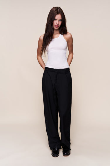 - A refined wardrobe essential, the Leo Pant features a relaxed mid-rise fit that falls into a straight leg for effortless drape and ease. Designed in a crisp suiting fabrication, it balances sharp tailoring with everyday wearability. Complete with belt loops, side pockets, and back welt pockets, this pant moves seamlessly from day to night.