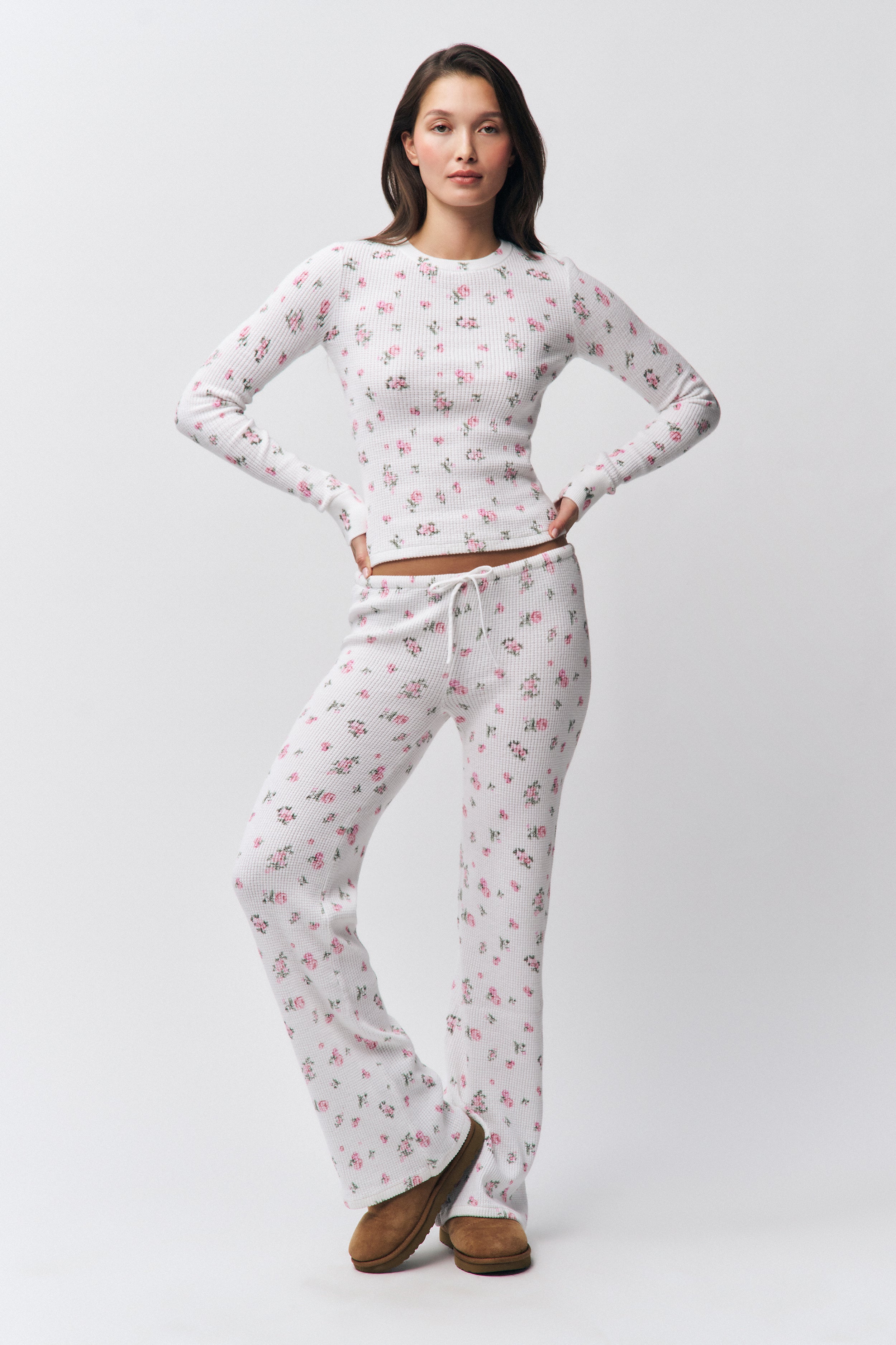 • Introducing the Relaxed Drawstring Pant, designed for both comfort and style. Featuring a beautiful printed floral design on our cozy thermal fabric, this pant add a touch of femininity to your loungewear or casual outfits.