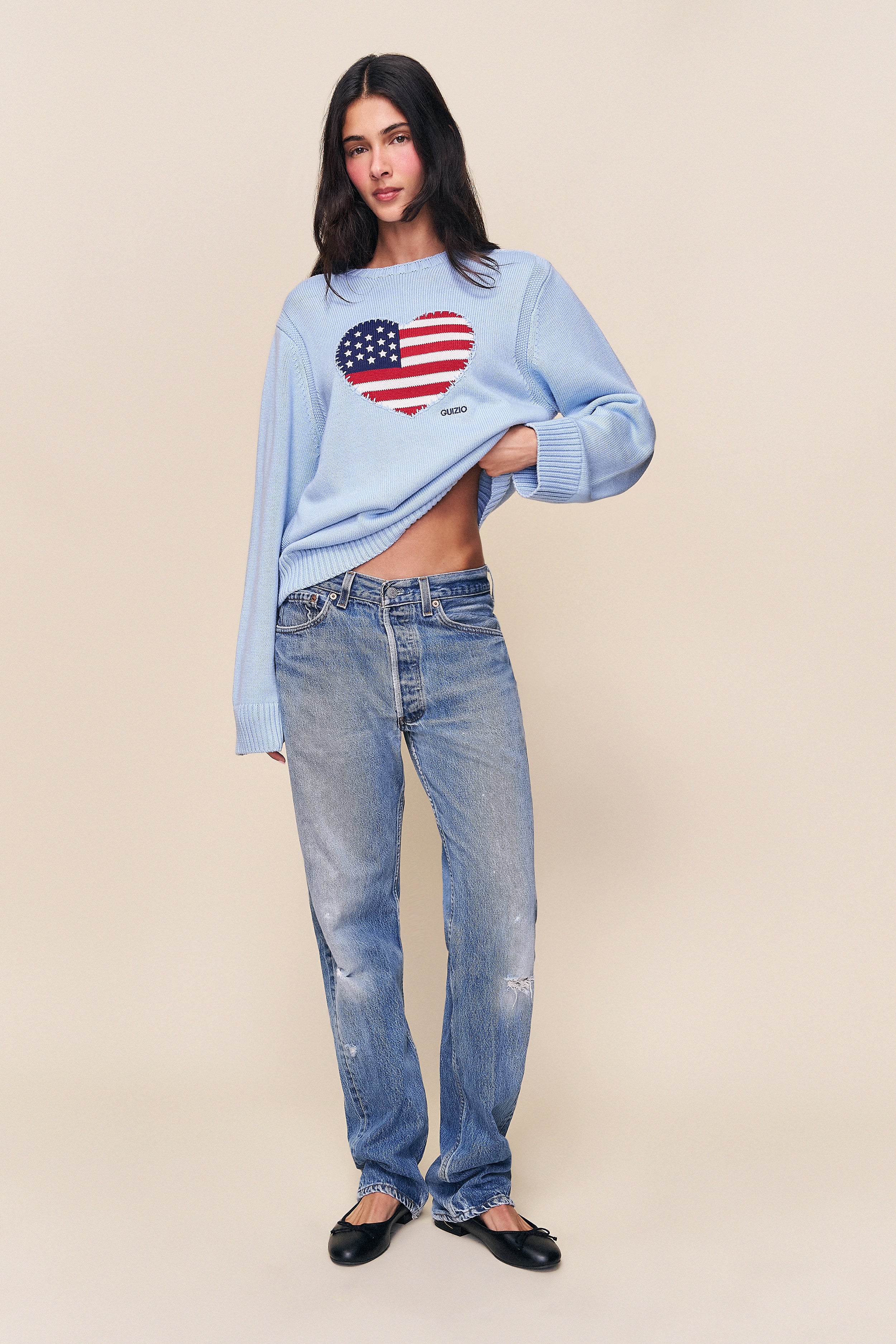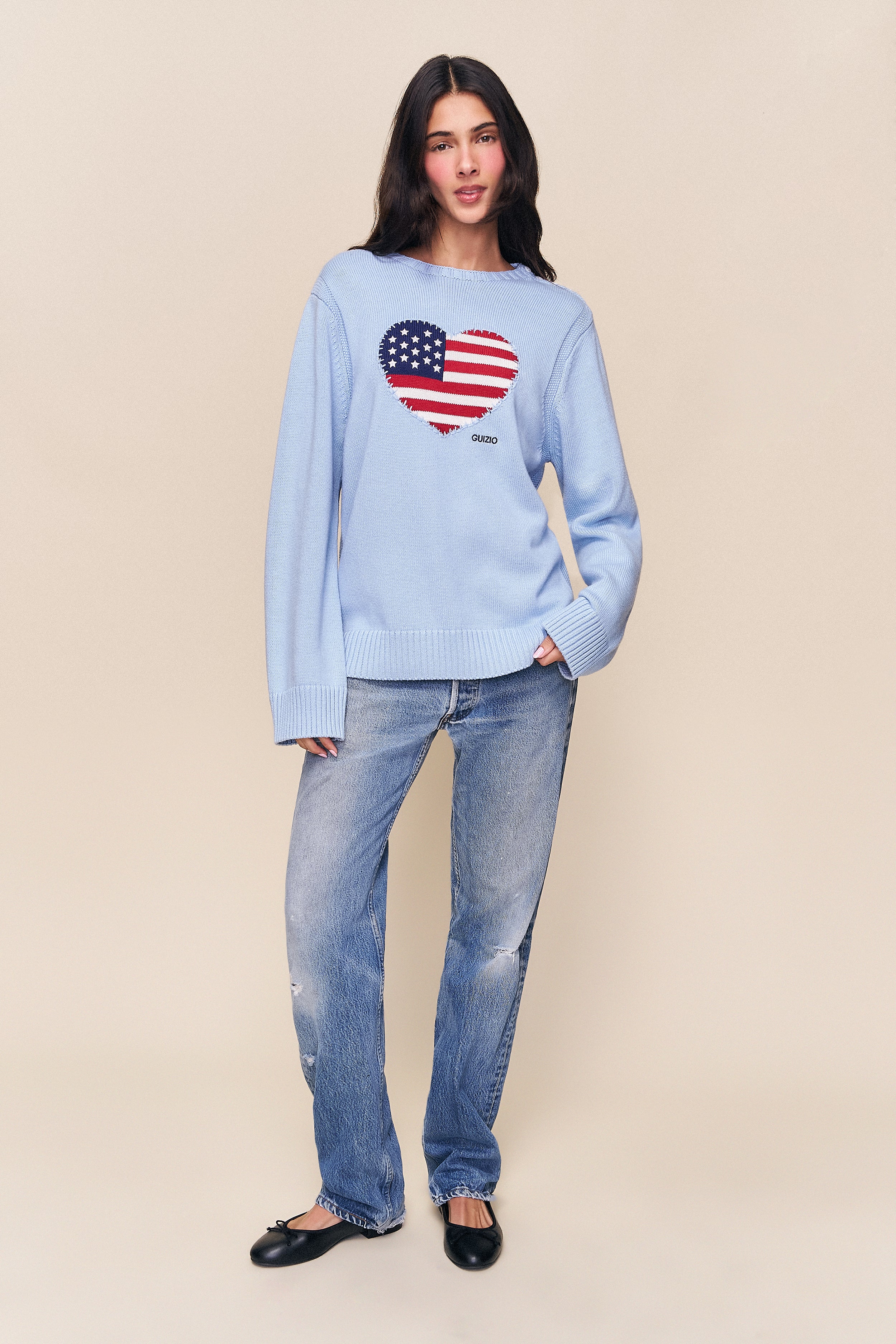- A relaxed knit sweater featuring a bold heart graphic inspired by vintage Americana. Soft, cozy, and made for effortless everyday wear. Relaxed fit. Take your true size for an easy slouch, or size up for an oversized look.